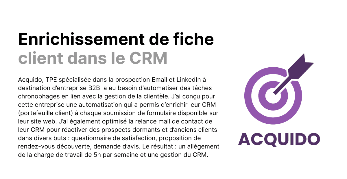 En moins d’une semaine, j'identifie les tâches manuelles redondantes, je connecte vos outils et déploie des workflows automatisés.
